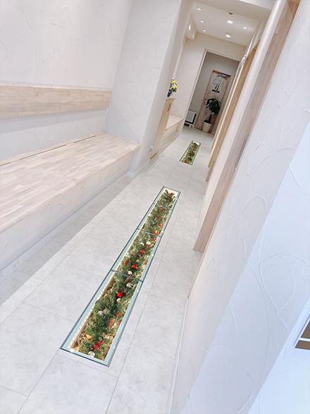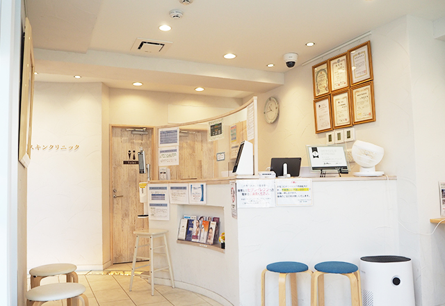 入口に面しており明るい待合室でおくつろぎください。診察が近づかれた方や、お化粧を落とされた後は、奥の診察室前の待合室でお待ちいただきます。