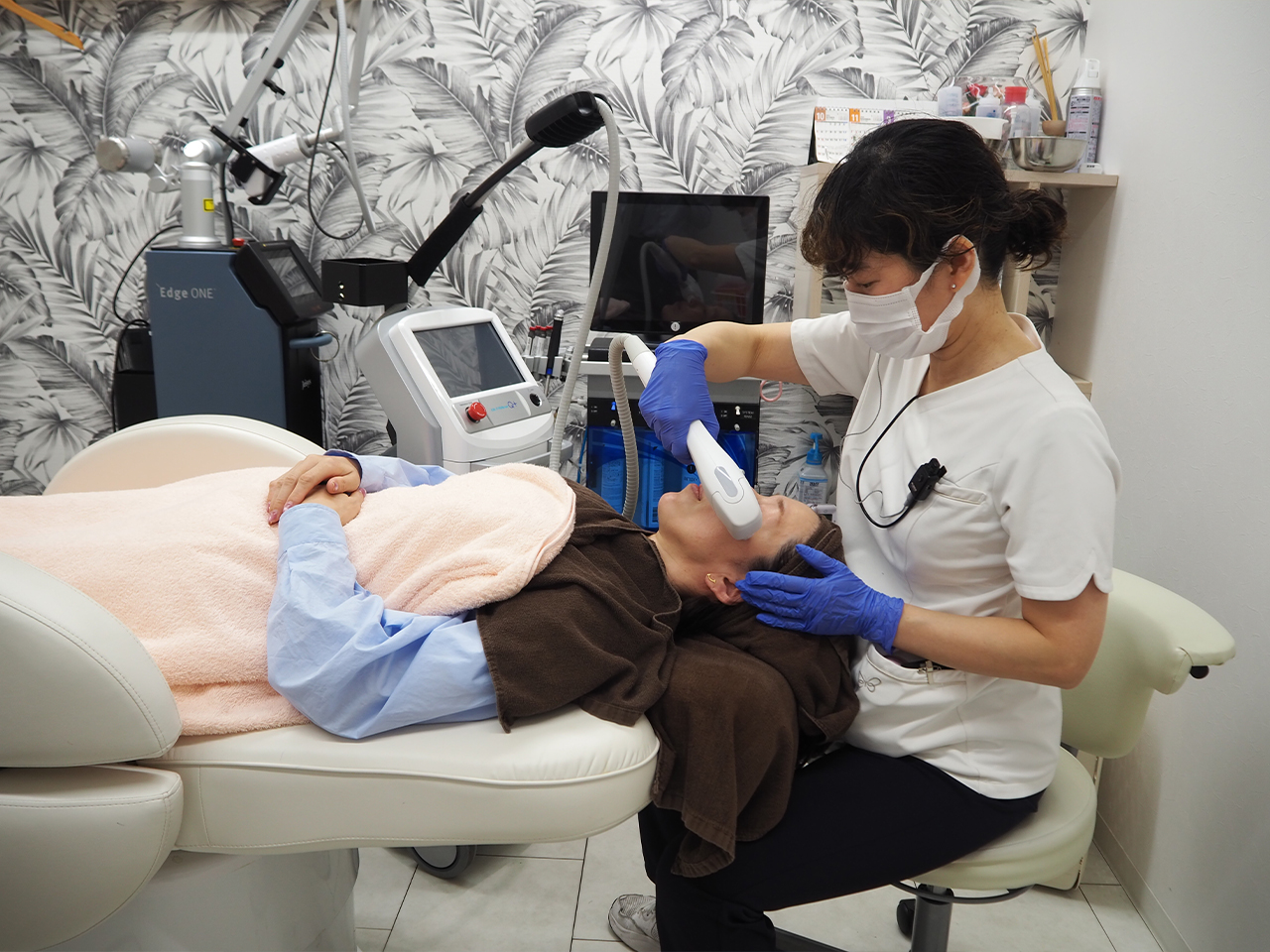 「Gentle Max Pro」を使い、YAGレーザーを顔全体に照射する治療法です。