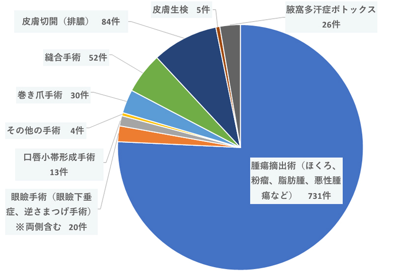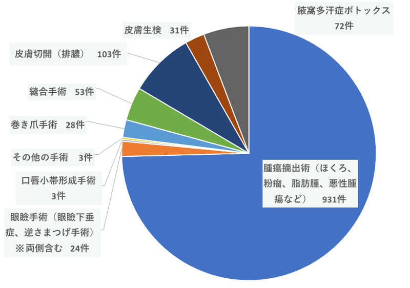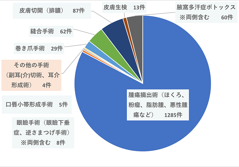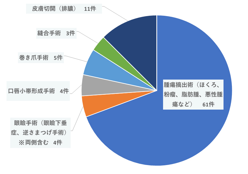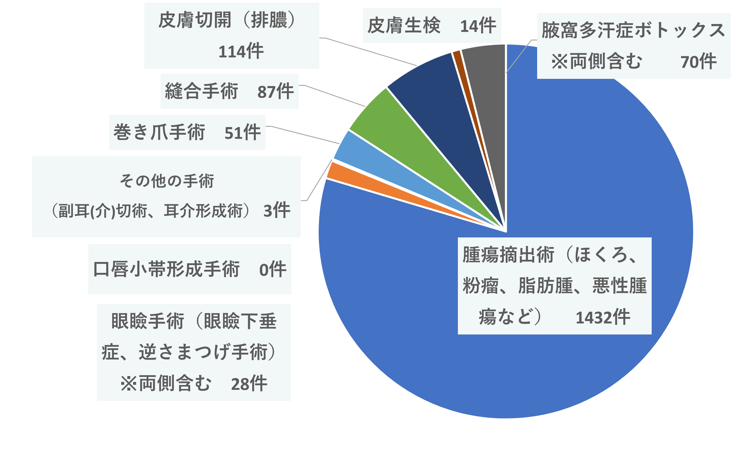 | 腫瘍摘出術(ほくろ、粉瘤、脂肪腫、悪性腫瘍など) | 61 | 731 | 931 | 1285 | 1432 |